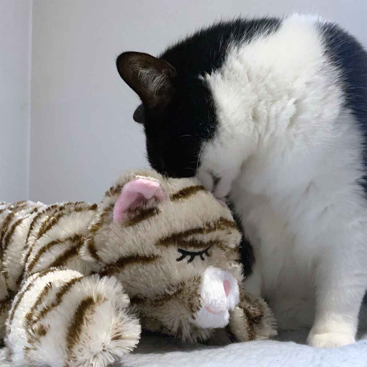 The Snuggle Kitty is a plush companion designed to comfort cats by mimicking the warmth and heartbeat of a real feline. Perfect for kittens, newly adopted pets, or cats facing anxiety, this toy features a battery-operated, pulsing Real-Feel Heartbeat® and optional heat packs to create a calming, lifelike experience. Made with soft, durable materials, it encourages snuggling and helps ease stress during times of separation, travel, or environmental changes. Easy to use and washable, the Snuggle Kitty provides a sense of security and companionship, making it an essential tool for soothing and bonding with your furry friend.