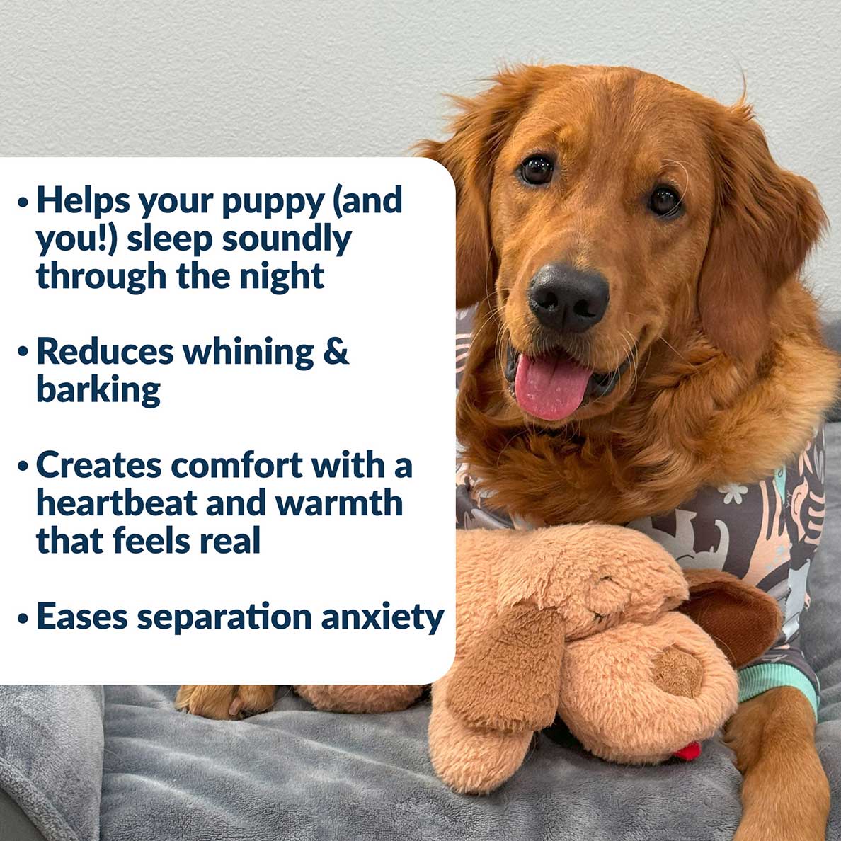 Snuggle Puppy® for Medium Breeds is the perfect solution for pet anxiety relief, crate training, and peaceful sleep for your furry friend. Designed to ease your pet's separation anxiety, it's perfect for new puppies transitioning home or any dog in need of a cozy companion.