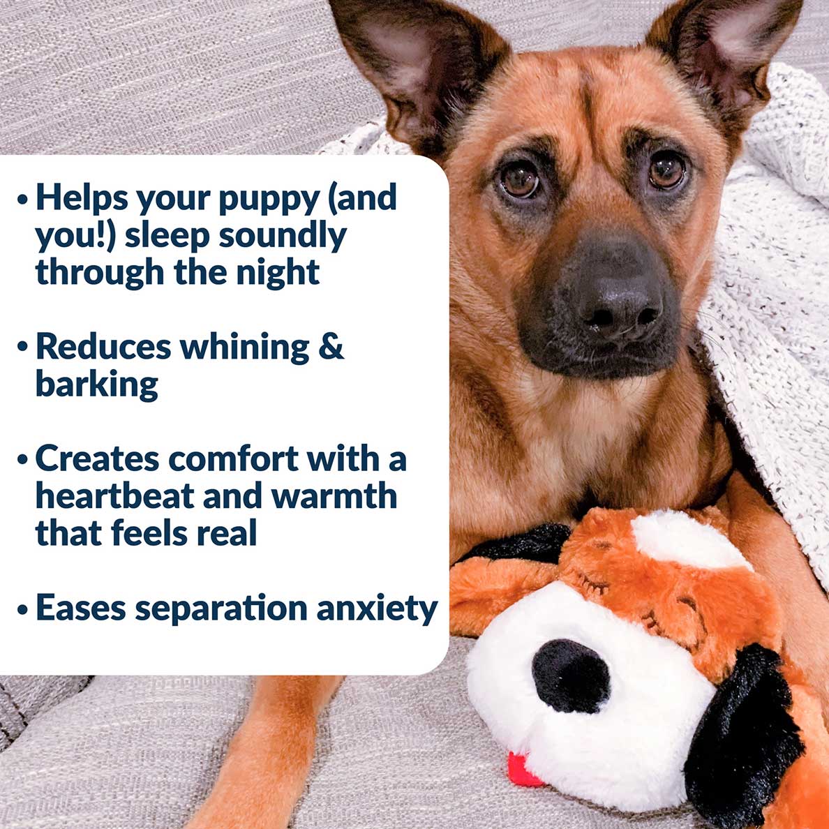 Just like the original, it features a Motion-Activated SmartBeat™ Heart and Overnight Heat Pack. This combination mimics the physical warmth and heartbeat of their mother, while the breed-specific design provides visual comfort to reduce loneliness and separation anxiety.
